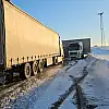 Bitlis'in Adilcevaz ilçesinde etkili olan soğuk hava nedeniyle buzlanan yolda kontrolden çıkan yabancı plakalı tır, kayarak yolu trafiğe kapattı.