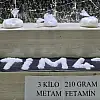 Bitlis Emniyet Müdürlüğü'ne bağlı Narkotik Suçlarla Mücadele Şube Müdürlüğü ile İstihbarat Şube Müdürlüğü ekiplerince Tatvan ilçesinde durdurulan bir araçta yapılan aramada, sağ ön yolcu koltuğunun alt kısmına zulalanmış halde 3 kilo 210 gram metamfetamin maddesi ele geçirildi.