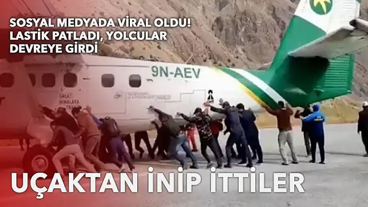 Nepal Bajura Havaalanında lastiği patlayan uçak, yolcular tarafından itilerek pist dışına çıkarıldı. Sıra dışı görüntüler sosyal medyada günün en çok paylaşılanları arasına girdi.