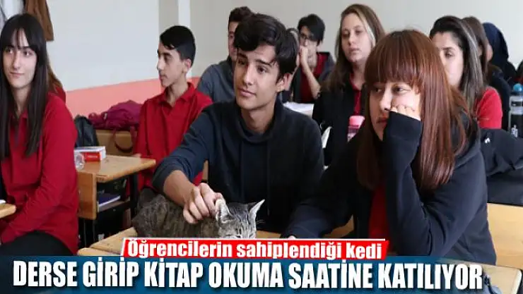 Van'ın İpekyolu ilçesinde Özen Adalı Anadolu Lisesindeki öğretmen ve öğrencilerin sahiplendiği ve okulun maskotu kedi, öğrencilerle derse girip kitap okuma saatine katılıyor.