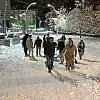 Van'ın Çatak ilçesinde etkili olan yoğun kar yağışı nedeniyle okulların il genelinde tatil edilmesini fırsata çeviren öğrenciler, kızaklarıyla gece geç saatlere kadar kayarak karın keyfini çıkardı.