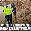 Çatak'ta kaldırımları kapatan çalılar temizlendi