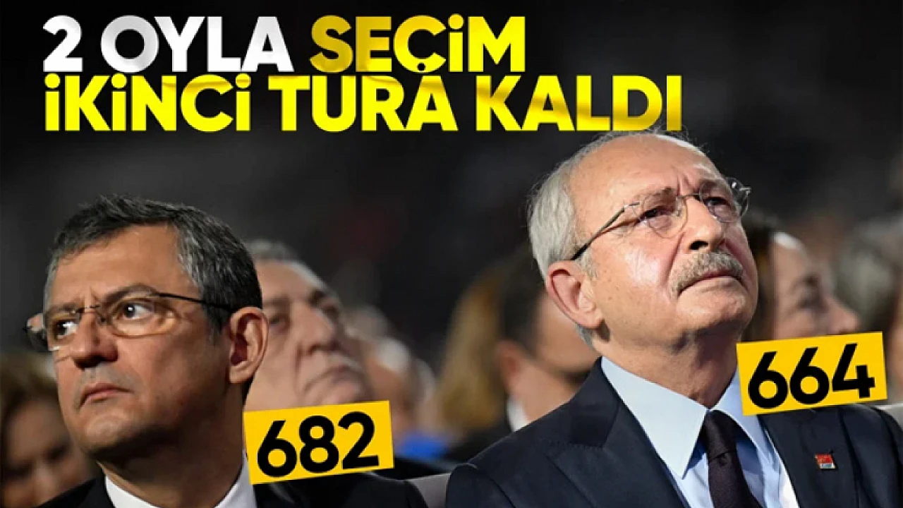 CHP'nin 38. Olağan Kurultayı'nda genel başkan seçimi ikinci tura kaldı. 1366 kayıtlı delegenin 682'si Özgür Özel'e, 664'ü Kemal Kılıçdaroğlu'na oy verdi.