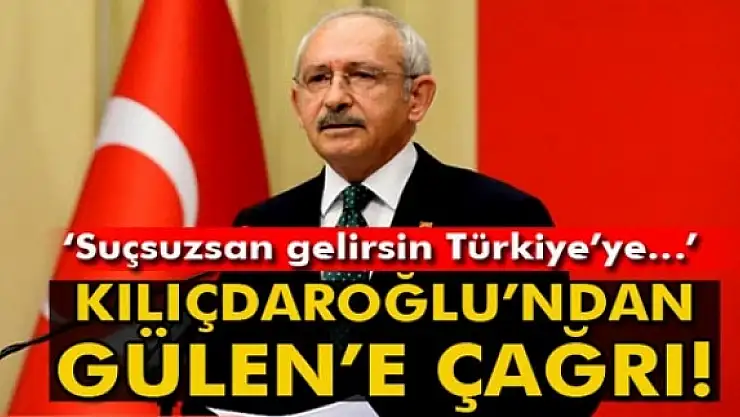 Cumhuriyet Halk Partisi (CHP) Genel Başkanı Kemal Kılıçdaroğlu, Fetullah Gülen'e çağrıda bulunarak, 'Suçsuzsan gelirsin Türkiyeye yargı önüne çıkarsın. Gelmiyorsan suçlusun o zaman' dedi.