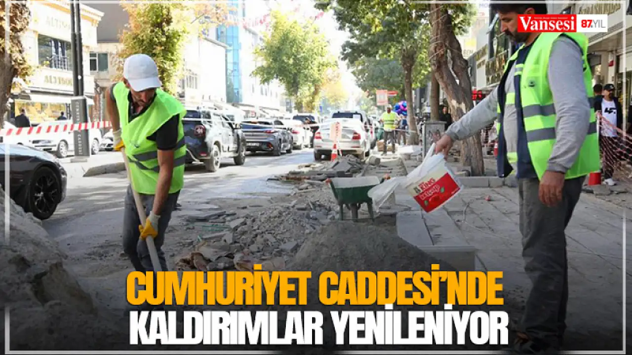 Van Büyükşehir Belediyesi, kent merkezinin en işlek noktalarından biri olan Cumhuriyet Caddesi'nde kaldırım yenileme çalışmalarını aralıksız sürdürüyor.