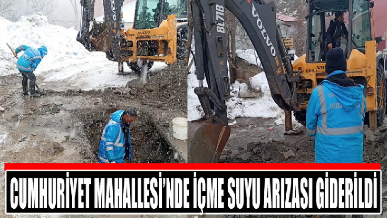 Edinilen bilgilere göre, Çatak İlçesine bağlı Cumhuriyet Mahallesi’nde içme suyu hattında meydana gelen arıza, mahallede geçici su kesintisine neden oldu. Durumun VASKİ’ye bildirilmesinin ardından teknik ekipler hızla bölgeye sevk edildi. Soğuk hava ve olumsuz saha koşullarına rağmen yürütülen çalışmalar sonucunda arıza kısa sürede tespit edilerek onarıldı. Onarım çalışmalarının tamamlanmasının ardından mahalle genelinde suyun kontrollü ve kademeli şekilde verilmeye başlandığı bildirildi.