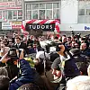 Bakan Davutoğlu, kısa konuşmasının ardından Van esnafını ziyaret etti. Yoğun bir kalabalık arasında güçlükle yürüyen Bakan Davutoğlu, bir kırtasiyede yaklaşık 10 dakika oturduktan sonra Van programına devam etti.