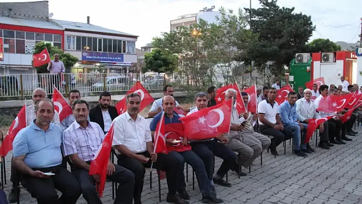 Kur-an’ı Kerim okunarak şehitlerin ruhuna dua edilmesinin ardından Kaymakam Mehmet Fatih Çelikel bir konuşma yaptı. Çelikel, “Milletin yüreğine saplanmaya çalışılan hançere karşı duruşa ortak oldunuz. Bu birlikteliği bizimle paylaştığınız için hepinize teşekkür ediyorum. İlk günden itibaren ilçemiz vatandaşları gereken hassasiyeti zaten gösterdi. Şu açık bir şekilde görüldü ki; milletimizin iradesini, milli egemenliği yok saymak isteyenler çok şükür ki muvaffak olamamışlardır. Bu vesile ile milletimiz için ne söylersek kelimelerin kifayetsiz kalacağını belirtmek isterim. Birçok şehidimiz var, Rabbim şehitlerimizin mekânlarını cennet eylesin, inşallah öyle olduğuna inanıyoruz. Kalbimizle gönlümüzle buna hiç şüphemiz yoktur. Bu duruş bir kez daha gösterdi ki bu irade, bu kararlılık kolay kolay bırakılamayacak, terk edilmeyecek, teröristlere bırakılmayacak kadar kıymetli bir görev ve vazifedir. Bizler de bugün burada bir araya gelerek bu birlikteliğimizi devam ettirmek ve duruşumuzu göstermek adına bir aradayız. Bu süreç içerisinde aynı zamanda ilçemizde hakikaten duruşlarını muhafaza eden başta ilçe halkımız olmak üzere, sivil toplum temsilcilerimiz, kurum amirlerimiz, personellerimiz, siyasi parti temsilcilerimizi canı gönülden tebrik ediyor ve teşekkürlerimi sunuyorum” dedi.