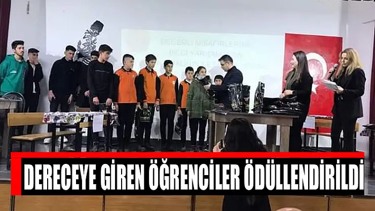 Dereceye giren öğrenciler ödüllendirildi