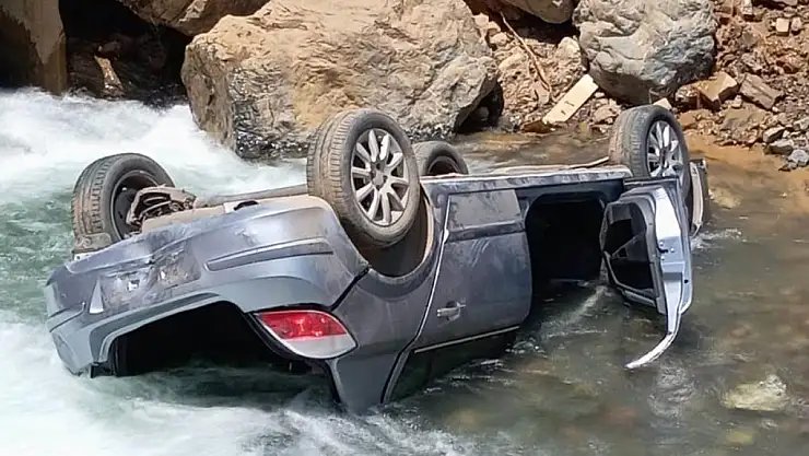Hakkari'de dereye uçan otomobildeki 3 kişi yara almadan kurtuldu.