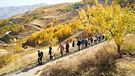 Muş'ta faaliyet gösteren Genç Adımlar Derneği üyeleri, sonbaharın doğaya kattığı renk cümbüşünü keşfetmek, doğayla iç içe vakit geçirmek ve kentin doğal güzelliklerini tanıtmak amacıyla Bağlar Bölgesi'nde doğa yürüyüşü düzenledi.