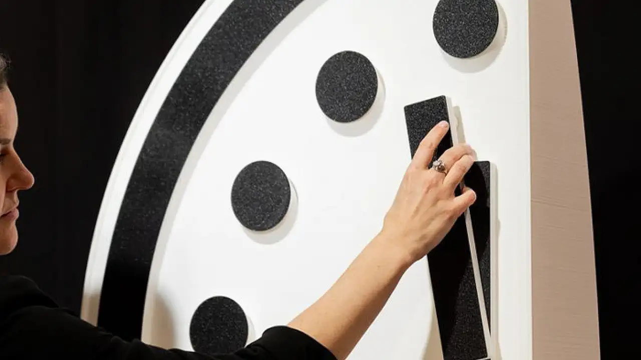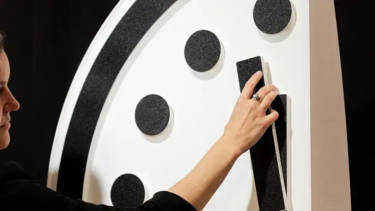 Bilim insanları, nükleer yıkım öncesinde insanlığın ne kadar zamanı kaldığına sembolik olarak işaret eden saati, gün bitimine 85 saniye kala olarak güncelledi. Saat, dünyanın sonunu temsil eden gece yarısına bugüne kadarki en yakın noktaya ayarlanmış oldu.
