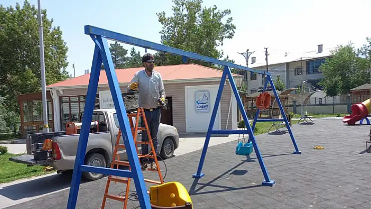 Edremit Belediyesi Park ve Bahçeler Müdürlüğü, ilçedeki park ve çocuk oyun alanlarında bakım onarım çalışması gerçekleştiriyor.