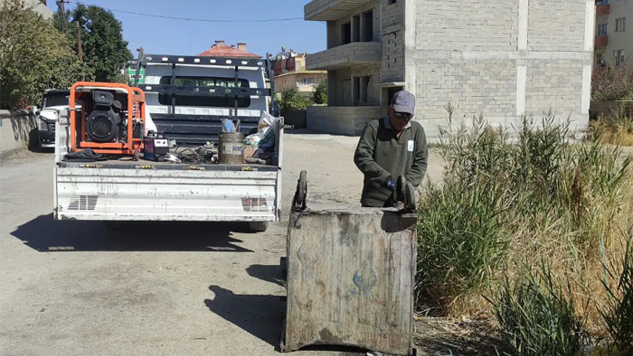 Edremit'te çöp konteynerlerinde bakım onarım çalışması