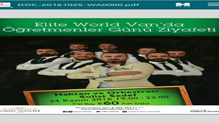 Demirci, Elite World Van Otelinin hazırladığı geceden faydalanmaları için 0432 484 1111 numaradan rezervasyon yapabileceklerini sözlerine ekledi.