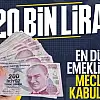 TBMM Plan ve Bütçe Komisyonu'nda, 4.9 milyon emeklinin faydalanacağı en düşük emekli maaşının 20 bin TL'ye yükseltilmesini içeren düzenleme kabul edildi.
