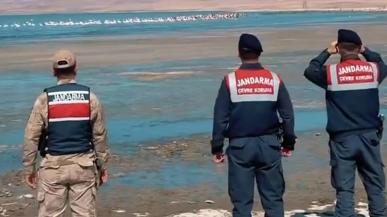 Erçek Gölü'nde jandarmadan flamingo nöbeti