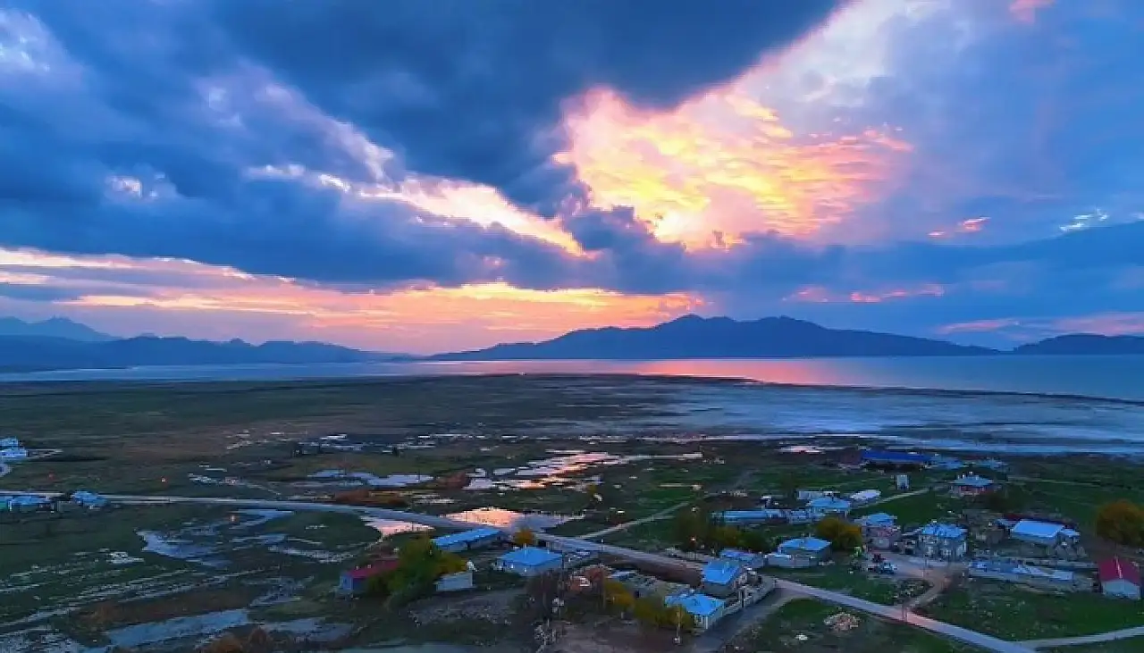 Van Gölü'nün hemen doğusunda yer alan ve özellikle flamingolar başta olmak üzere birçok kuş türüne ev sahipliği yapan Erçek Gölü, gün batımı manzarasıyla fotoğraf ve doğa meraklılarının uğrak yeri olmaya devam ediyor.