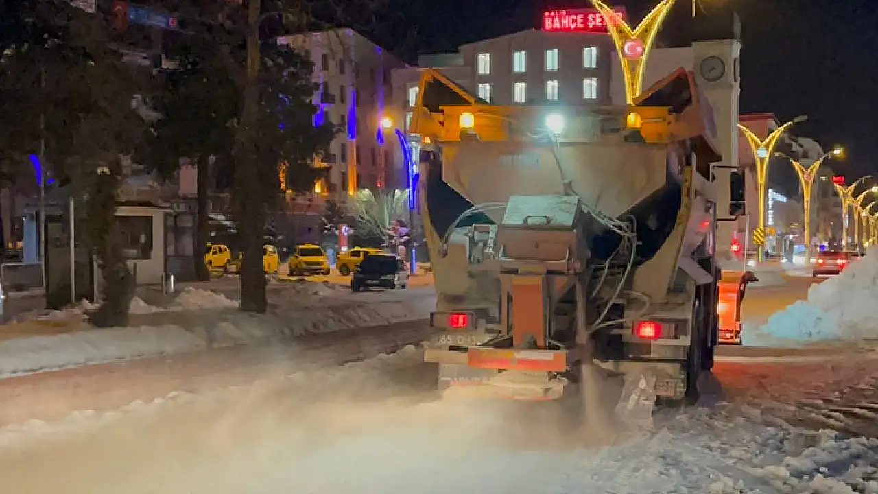 Erciş Belediyesi'nden buzlanmaya karşı yoğun tuzlama mesaisi