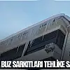 Çatılardan koparak düşme tehlikesi bulunan buz sarkıtlarına karşı vatandaşlar tedirginlik yaşarken, yetkililer özellikle yaya yoğunluğunun fazla olduğu bölgelerde dikkatli olunması konusunda uyarılarda bulundu.