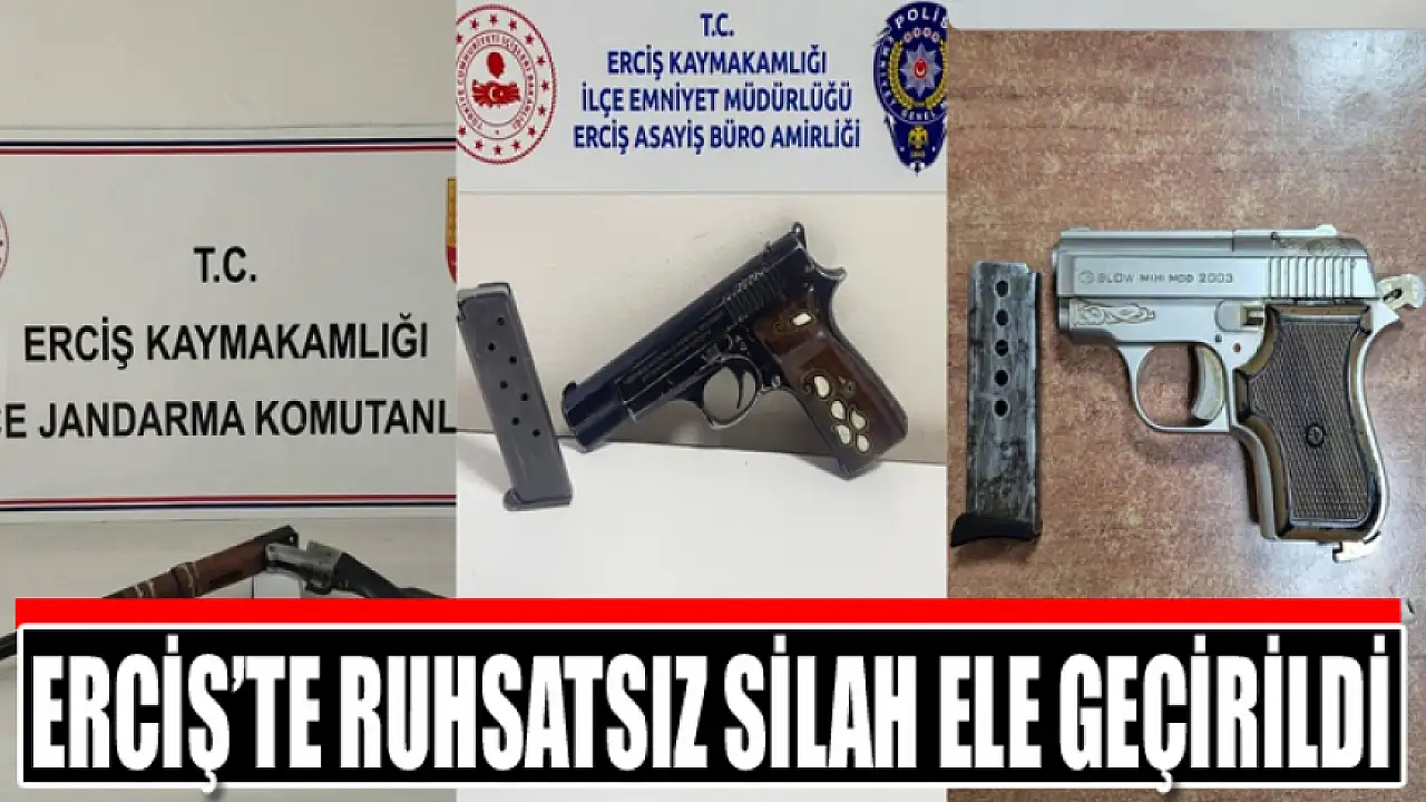 Erciş Kaymakamlığı tarafından yapılan açıklamaya göre, İlçe Emniyet Müdürlüğü ve İlçe Jandarma Komutanlığı ekipleri, ilçenin farklı noktalarında son günlerde gerçekleştirdikleri operasyon ve kontrollerde çok sayıda ruhsatsız tabanca ile av tüfeği ele geçirdi.