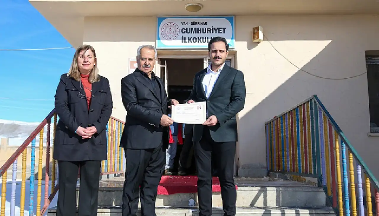 Gürpınar'da yarıyıl tatiline giren öğrenciler için düzenlenen karne dağıtım töreni, anlamlı görüntülere sahne oldu. Program kapsamında Gürpınar Kaymakamı Yasin Erdem, İlçe Milli Eğitim Müdürü Elif Yörük ile birlikte Cumhuriyet İlkokulu'nu ziyaret ederek öğrencilerin karne sevincine ortak oldu.