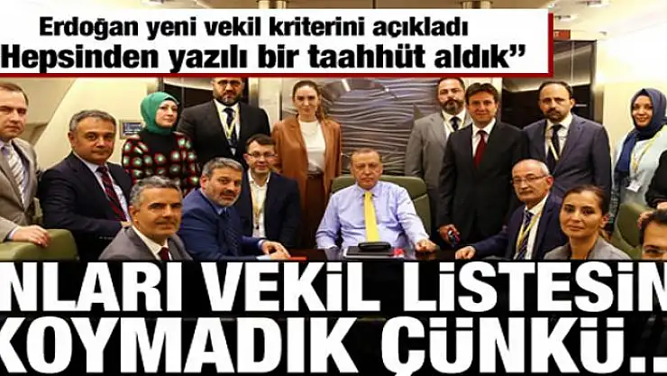 Cumhurbaşkanı Erdoğan, Bosna dönüşü aralarında Haber7.com Genel Yayın Yönetmeni İbrahim Erdoğan'ın da bulunduğu gazetecilere önemli açıklamalarda bulundu. Erdoğan, vekil listeleri hakkında 'yeni kriterler' ve liste dışında kalan isimler ile ilgili çok çarpıcı açıklamalar yaptı.