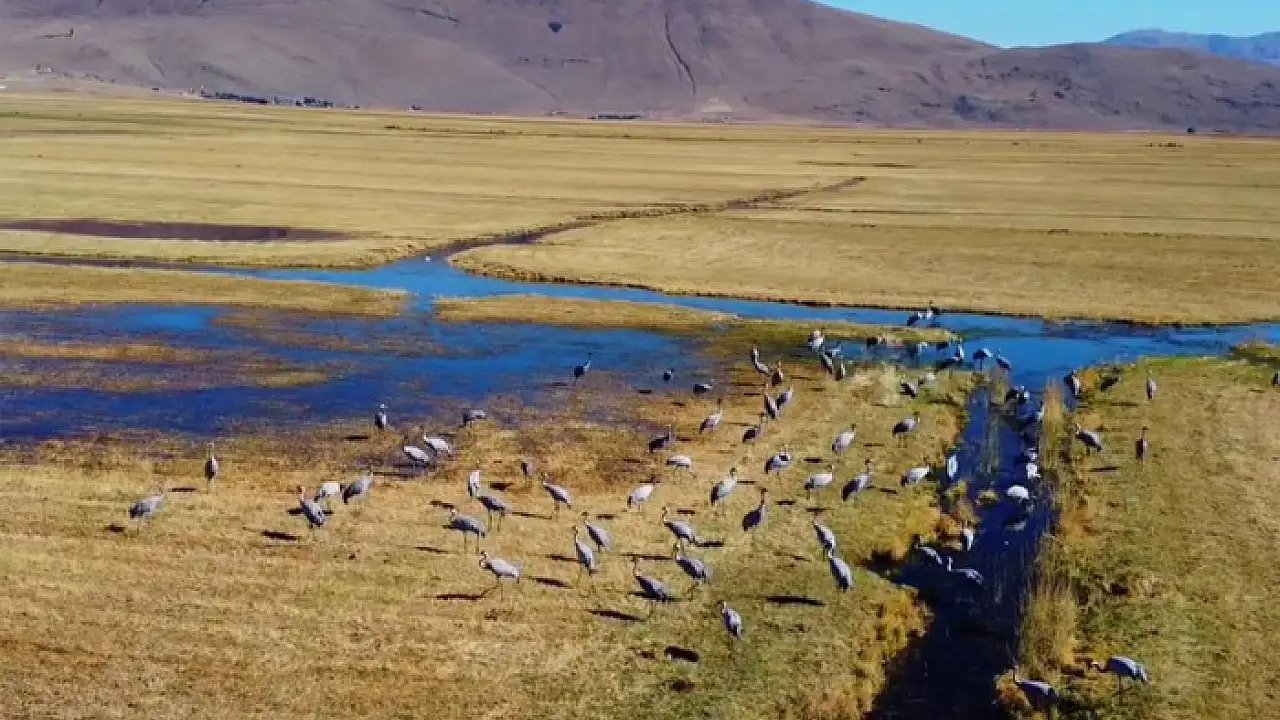 Doğa Koruma Milli Parklar 13. Bölge Müdürlüğü ekipleri tarafından göç sırasında Erzurum'da mola veren turnalar görüntülendi.