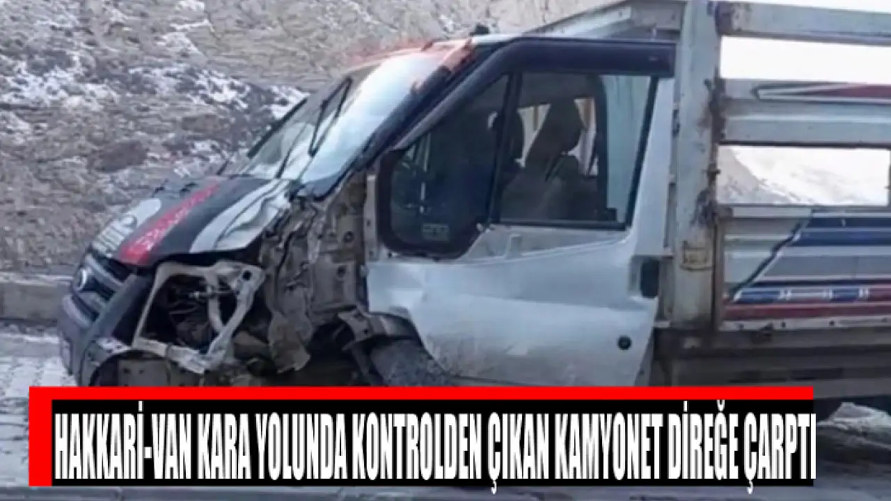 Hakkari-Van kara yolunda kontrolden çıkan kamyonet direğe çarptı