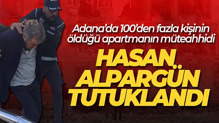 Pazartesi Kahramanmaraş merkezli meydana gelen 7,7 büyüklüğündeki depremde, Adana Çukurova Güzelyalı Mahallesi'nde bulunan 16 katlı Hasan Alpargün Apartmanı da yıkıldı. Toplam 32 dairenin bulunduğu binadan sadece yaşlı bir vatandaş sağ çıkabildi. 100'den fazla cansız bedenin çıkarıldığı binanın müteahhidi Hasan Alpargün, depremin hemen ardından KKTC'ye kaçtı. Lefkoşa Emniyet Müdürlüğünce gözaltına alınan Alpargün, dün Adana'ya getirilmişti. “Taksirle öldürme ve yaralamaya neden olmak” suçlarından gözaltında tutulan Hasan Alpargün, bugün çıkarıldığı nöbetçi Sulh Ceza Hakimliği tarafından tutuklanarak cezaevine gönderildi. Dün Adli Tıp Birimi'nde sağlık kontrolünden geçirilen Alpargün, burada basın mensuplarının kendisine yönelttiği sorulara "Mukadderat" yanıtını vermişti.