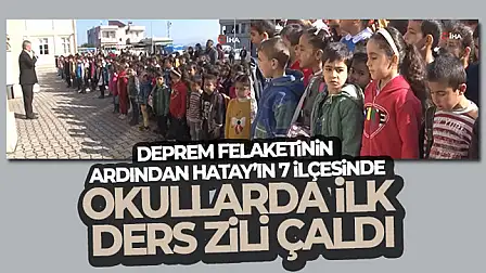 Kahramanmaraş'ta meydana gelen depremlerin ardından bölgede en ağır hasarı alan illerden Hatay'da ders zili çaldı. Depremlerin etkisiyle bin 315 okuldan 5'inin yıkıldığı Hatay'ın Altınözü, Arsuz, Dörtyol, Erzin, Reyhanlı, Payas ve Yayladağı ilçelerindeki 494 okulda eğitim bu sabah kademeli olarak başladı.