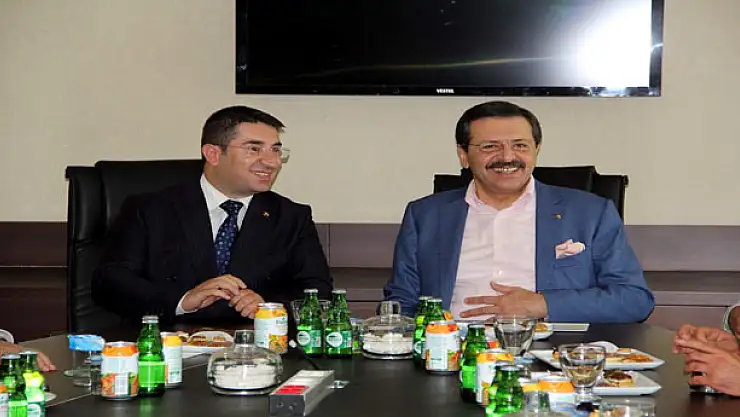 Türkiye Odalar ve Borsalar Birliği Başkanı M. Rifat Hisarcıklıoğlu, Dünyanın En Kalabalık Kahvaltı Sofrası rekor denemesi için geldiği Vanda, Van Ticaret Borsası Başkanı Selman Toprakı ziyaret etti.