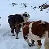 Bitlis'in Hizan ilçesinde yüksek rakımlı kırsal bölgelerde etkili olan ani kar yağışı, meralarda otlatılan büyükbaş hayvanları zor durumda bıraktı.
