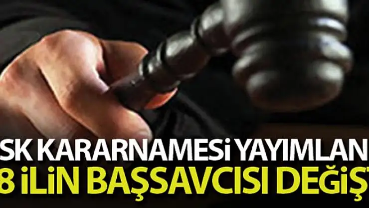 Hakimler ve Savcılar Kurulu (HSK) Kararnamesiyle, 4 bin 163'ü adli yargı, 465'i idari yargı olmak üzere 4 bin 628 hakim ve cumhuriyet savcısının görev yeri değişti. Görev yeri değiştirilen savcıların arasında 18 ilin başsavcısı da bulunuyor.