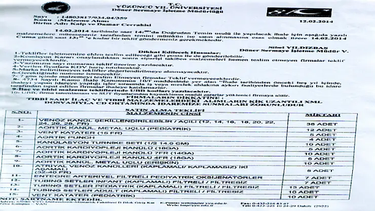 Söz konusu Döner Sermaye İşletme Müdürlüğü'nün ihalelerinden biri de, 12.02.2014 tarihinde ihaleye çıkılan ve 14.02.2014 tarihinde yapılan malzeme alımı ihalesi. Kalp ve Damar Cerrahisi birimi için alınacak olan sarf ilaç ve tıbbi malzemelerin bölünerek iki ihale halinde aynı saatte yapıldığı görülüyor. Buna benzer çok sayıda ihalenin varlığı, tespit edildi.