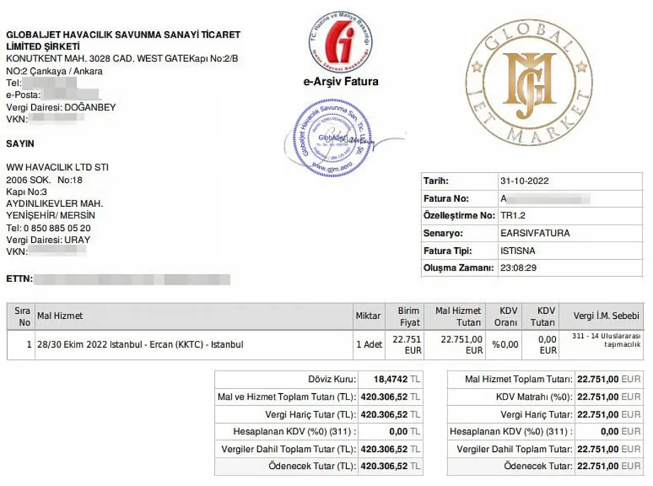 Hem Büyükşehir Belediye Başkan adayı iken hem de başkan seçildikten sonra sık sık Ekrem İmamoğlu'nun da kiraladığı özel jetin uyuşturucu partisi düzenlenen uçuşunun kiralama faturaları ortaya çıktı.