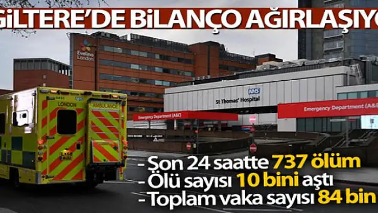 İngiltere'de korona virüs nedeniyle son 24 saatte 737 kişinin daha hayatını kaybederken, korona virüs nedeni ile hayatını kaybedenlerin sayısı 10 bini aştı.