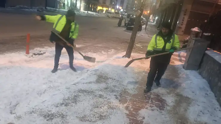 Ekipler, kar yağışının etkisini artırdığı saatlerde müdahalelerini sıklaştırarak buzlanma riskine karşı tuzlama çalışmalarını sürdürdü.