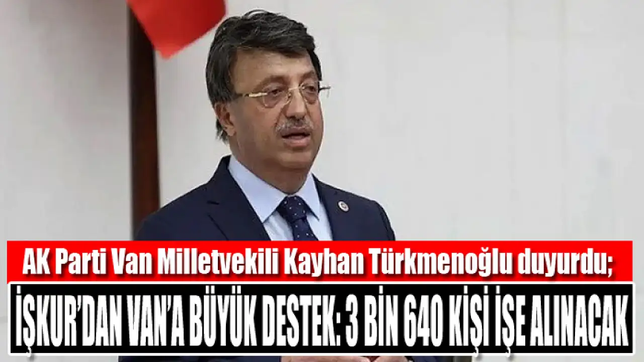 AK Parti Van Milletvekili Kayhan Türkmenoğlu, İŞKUR tarafından yürütülen İşgücü Uyum Programı (İUP) kapsamında Van'a 3 bin 640 kişilik kontenjan tahsis edildiğini açıkladı.
