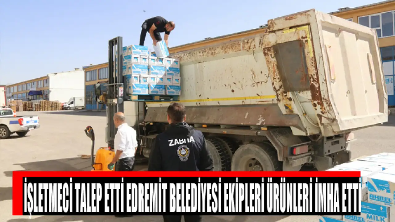 Edremit'te bir işletmeci, ürünlerinin bozuk ve kullanılmaz durumda olduğunu belediyeye bildirdi. Bunun üzerine belediye ekipleri ürünleri alarak imha etti.