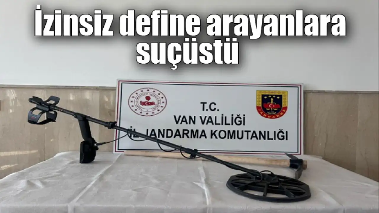Van Valiliğinden yapılan açıklamada, İl Jandarma Komutanlığı Çaldıran İlçe Jandarma Komutanlığı tarafından "2863 Sayılı Kültür ve Tabiat Varlıkları Kanununa Muhalefet" suçuna yönelik yürütülen çalışmaların devam ettiği belirtildi. Açıklamada, "Çaldıran ilçesi Umuttepe Mahallesi kırsal kesiminde gerçekleştirilen operasyonla V.Ç. (37), B.Ç. (35) ve N.Ç. (28) isimli şahıslar izinsiz define ararken suçüstü yakalanmışlardır. Şüphelilerle birlikte; 1 adet dedektör, 1 adet kazma ele geçirilerek muhafaza altına alınmıştır. Şüpheliler N.E. (41), Y.D.(37) hakkında 2863 Sayılı Kültür ve Tabiat Varlıklarını Koruma Kanununa Muhalefetten adli işlem yapılmıştır. Güvenlik güçlerimiz tarafından kaçakçılık suçlarıyla mücadele kapsamında yürütülen çalışmalara kararlılıkla devam edilmektedir" denildi.