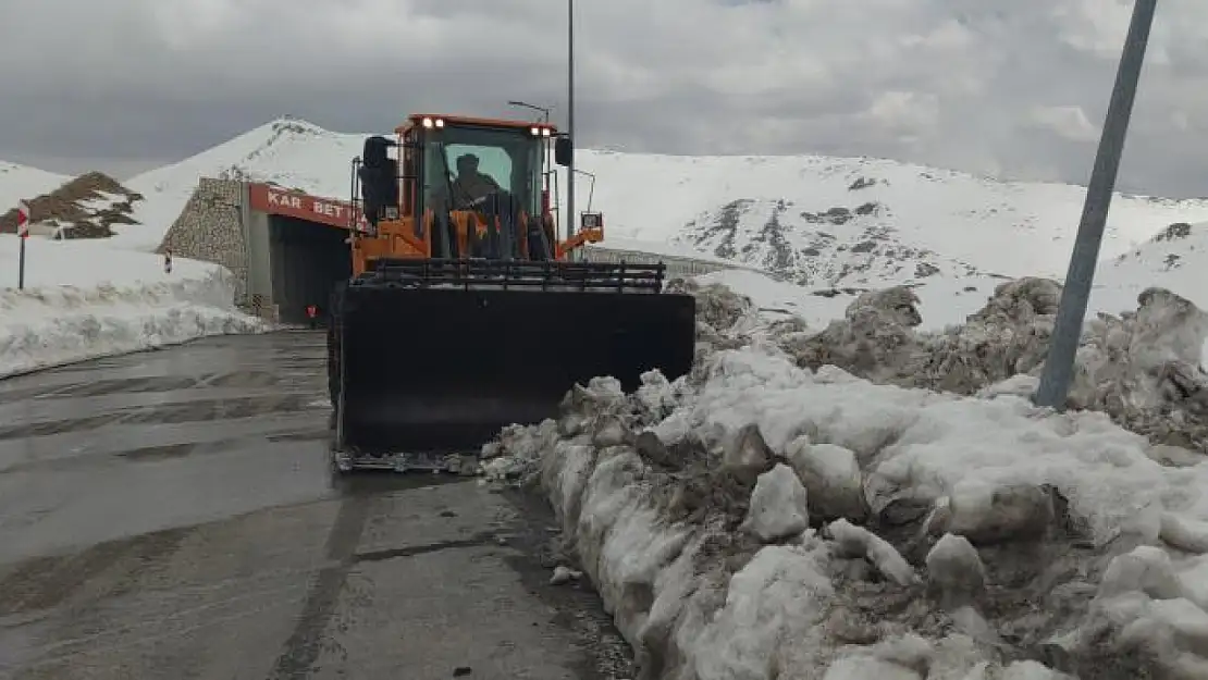 Kışın çetin geçtiği Van'ın Bahçesaray ilçesinde hayatı olumsuz yönde etkilerken, 3 bin rakımlı Karabet Geçidi ise çığ ve olumsuz hava şartlarından dolayı aylarca kapalı tutuluyor. Karayolları 11. Bölge Müdürlüğü 111. Şube Şefliği'ne bağlı Görentaş Şantiye'sinde görevli ekipler, kış mevsimin büyük bölümünde çığ tehlikesi ve olumsuz hava şartları nedeniyle ulaşıma kapatılan Van-Bahçesaray kara yolunu açmak için büyük uğraş veriyor. Birçok çığ yatağının bulunduğu bölgede yapılan çalışmalar sonucu yolu geçtiğimiz hafta ulaşıma açan ekipler, yol genişletme çalışmalarını da tamamladı. Ekipler yolda genişletme çalışmalarını tamamladıktan sonra yoğun tipi ve fırtınadan dolayı 3 bin rakımlı Karabet Geçidinin zirvesinde bulunan kar tüneline biriken kar, gündüz sıcak, gece soğuk olmasından dolayı tünel içlerindeki kar kütleleri buza dönüşerek tehlike arz ediyor. Bunun üzerine ekipler, muhtemel bir kazanın önüne geçmek için tünel içerisindeki buz kütlelerini temizleyip tuzlama işlemi yapıyor.