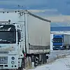 Bitlis'in Adilcevaz ilçesinde etkili olan yoğun kar yağışı ve buzlanmadan dolayı onlarca araç yolda kaldı.