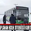 Kara saplanan halk otobüsü kurtarıldı