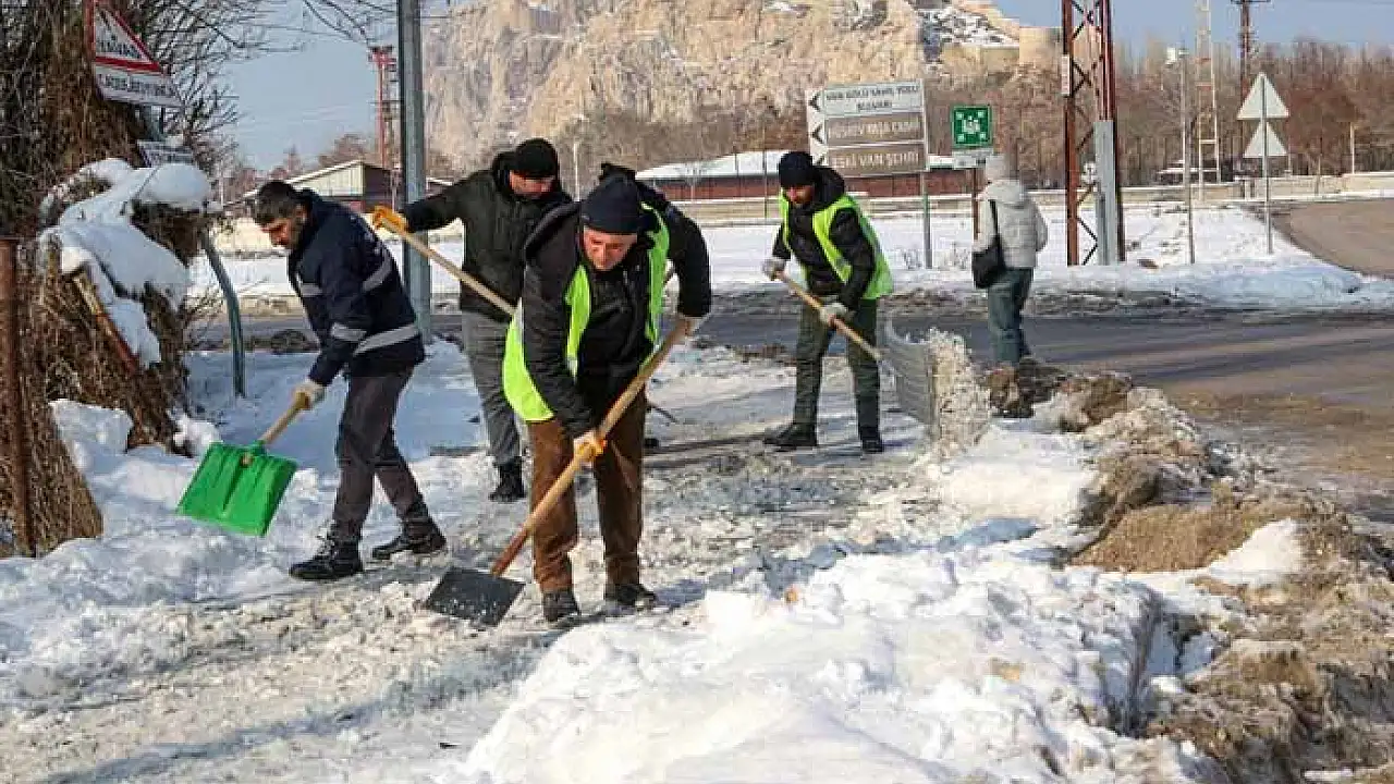 Van Büyükşehir Belediyesi karla mücadele ekipleri, dondurucu soğuklara rağmen çalışmalarını aralıksız sürdürüyor.
