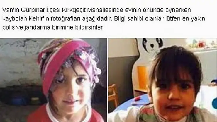 Gürpınar ilçesinde evlerinin önünde oyun oynadığı sıra kaybolan 4 yaşındaki Nehir Aslanın arama çalışmaları devam ederken, Van Emniyet Müdürlüğü ise, resmi Facebook sayfasında çocuğun fotoğraflarını yayınlayarak olayı takipçilerine duyurdu.