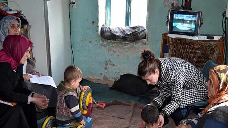 Aile ile bir süre sohbet edip sıkıntılarını dinleyen heyet, ailenin ihtiyacı olan ev yapım malzemesinin yardımı konusunda not alarak ilçe merkezine döndüler.