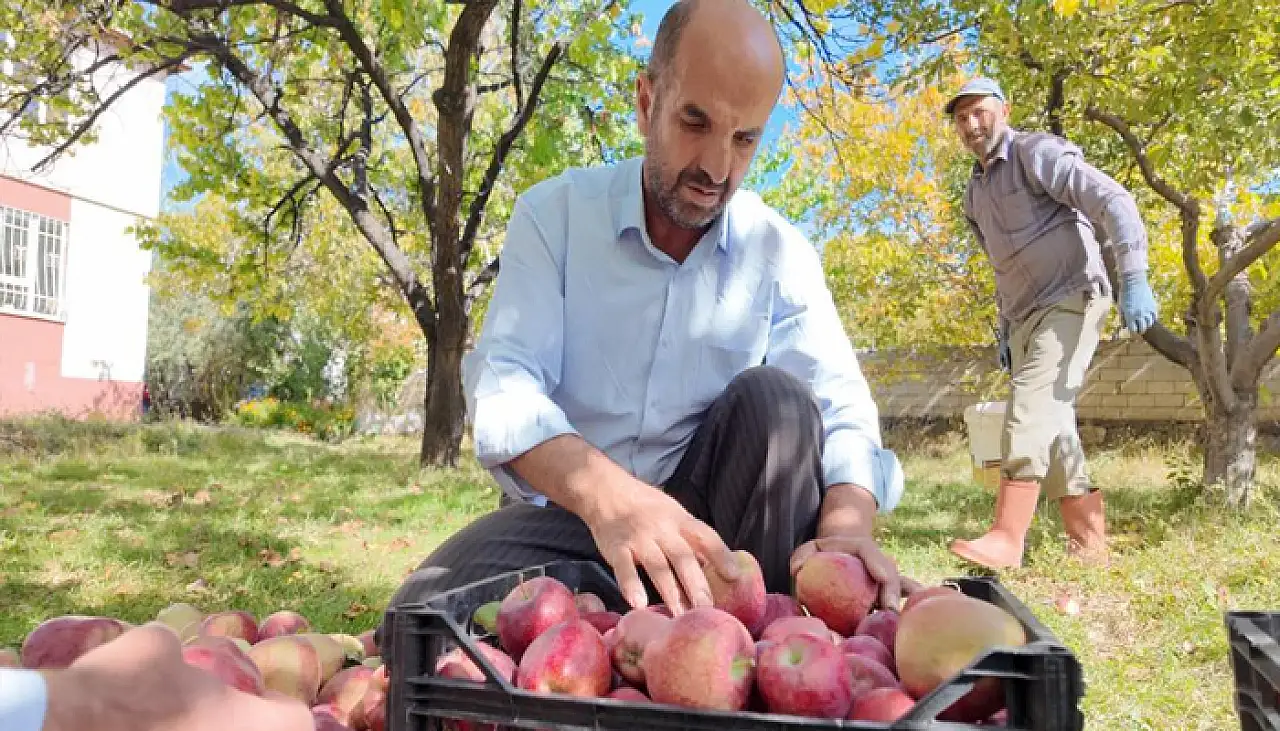 Van'ın Erciş ilçesinde elma yetiştiricileri kışlık elmaları dallardan indirmeye başladı.
