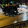 Kontrolden çıkıp ağaca çarpan otomobil alev aldı: 1'i ağır 2 yaralı