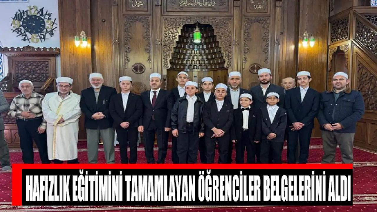 Diyanet İşleri Başkanlığı tarafından yürütülen hafızlık eğitimini başarıyla tamamlayan 8 öğrenci, düzenlenen törenle hafızlık belgelerini aldı.